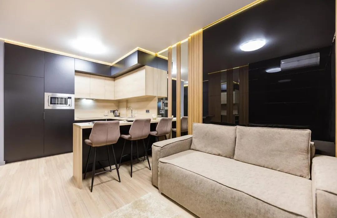 Fayna Town - Loft Black - Nyvky с Wi-Fi и парковкой расположились в районе Святошинский. От апартаментов до аэропорта Киев им. И. И. Сикорского можно доехать на автомобиле за 25 минут.